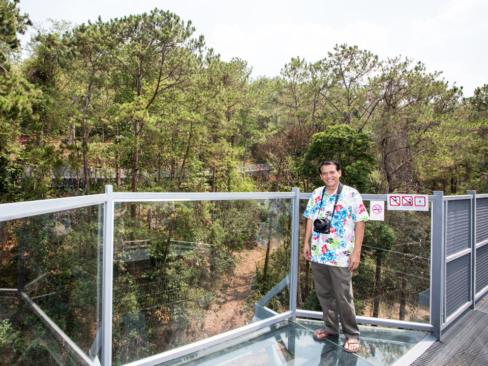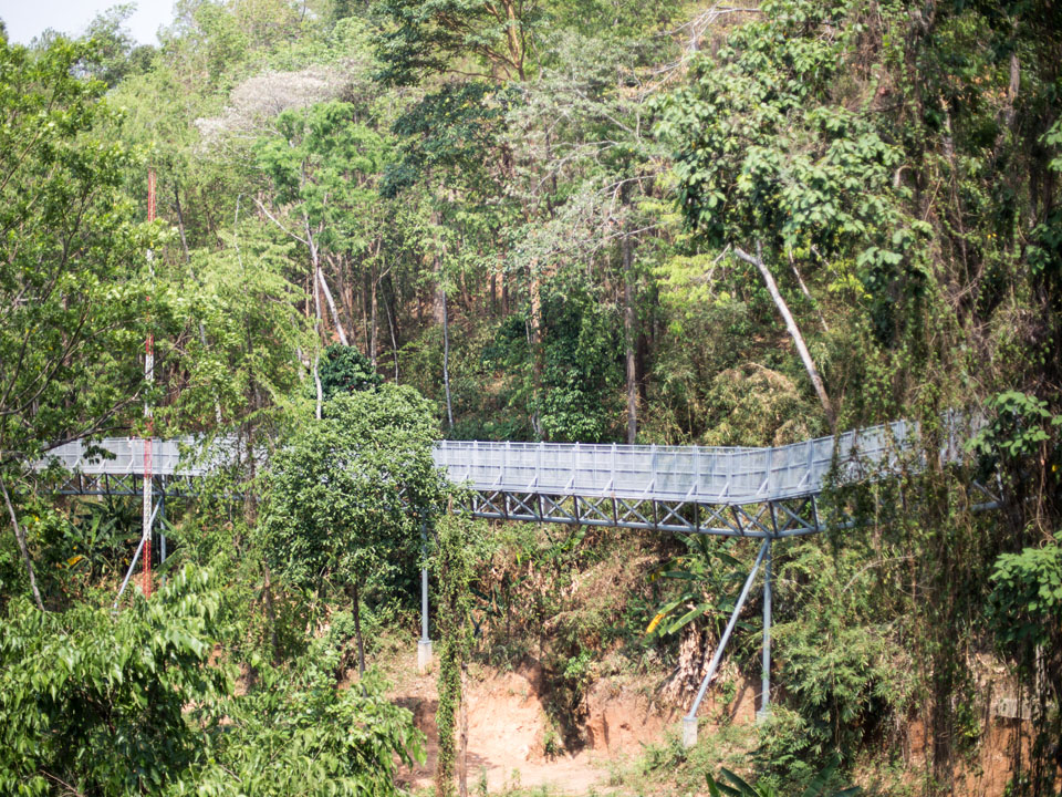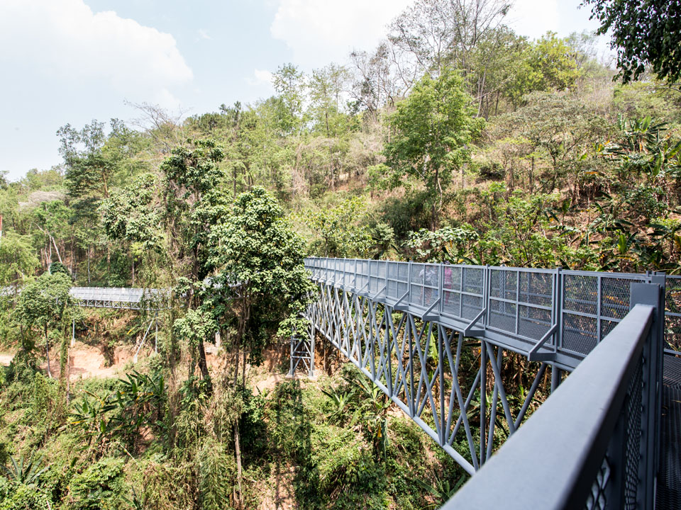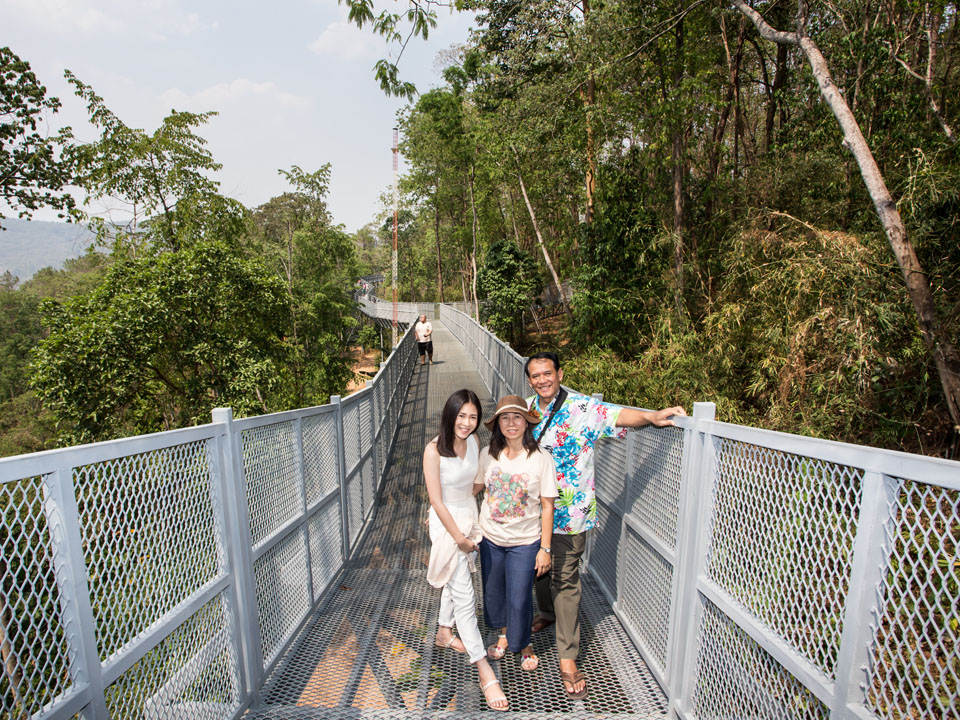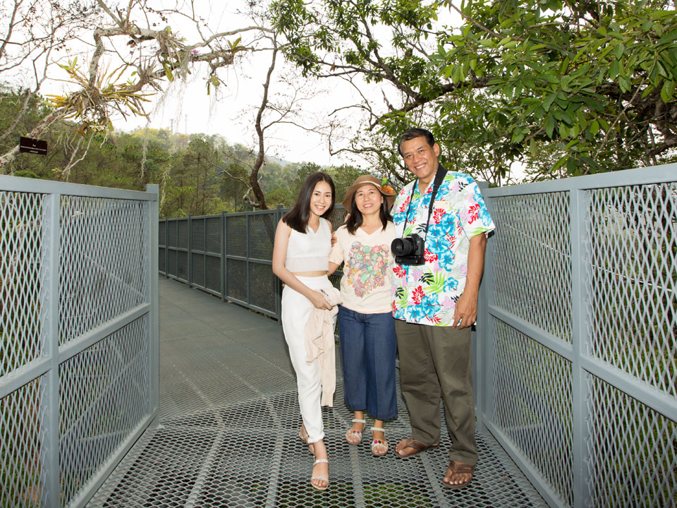 วันนี้มาเดินเที่ยวที่สวนพฤกษศาสตร์สมเด็จพระนางเจ้าสิริกิติ์ ซึ่งเพิ่งสร้าง Canopy walkway หรือทางเดินลอยฟ้า เหนือเรือนยอดไม้ ที่ยาวที่สุดในประเทศไทย ด้วยระยะทางกว่า 400 เมตร และระดับความสูงกว่า 20 เมตร โดยออกแบบให้มีความกลมกลืนกับธรรมชาติ โครงสร้างทำมาจากเหล็กกล้า แข็งแรง บางช่วงยังมีกระจกใส สามารถมองเห็นลงไปด้านล่างได้ |