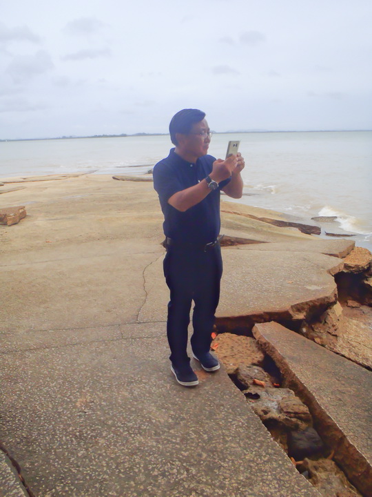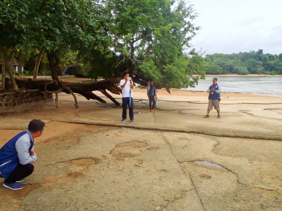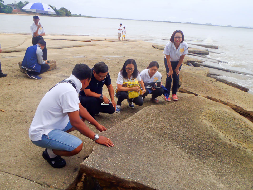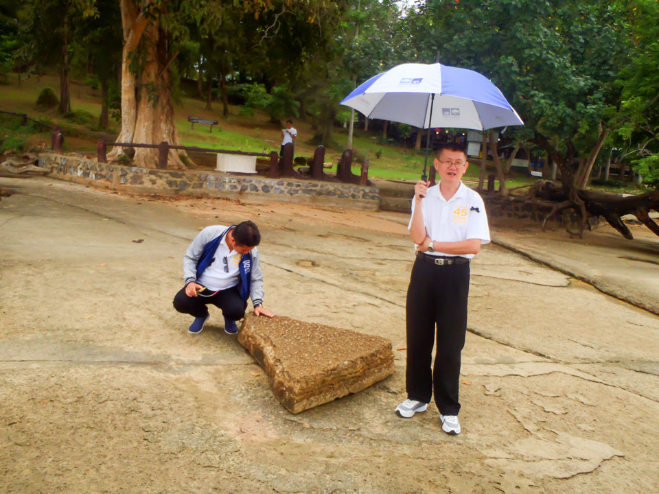 เอ... มันหอยจริงๆ หรือเปล่าน้า... นักพิสูจน์หลักฐานกำลังขะมักเขม้นดูหินกันอยู่ |