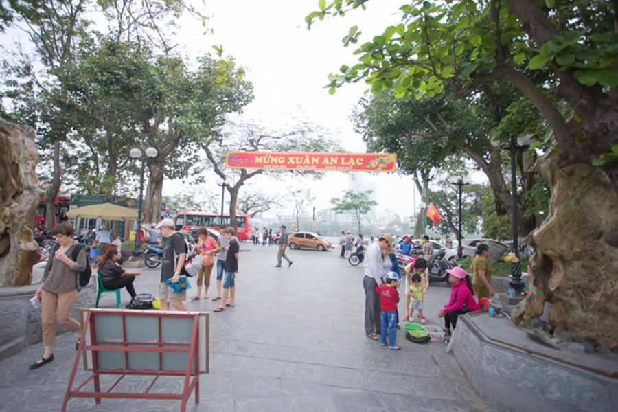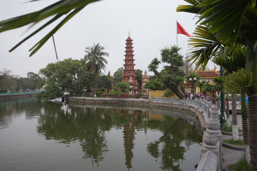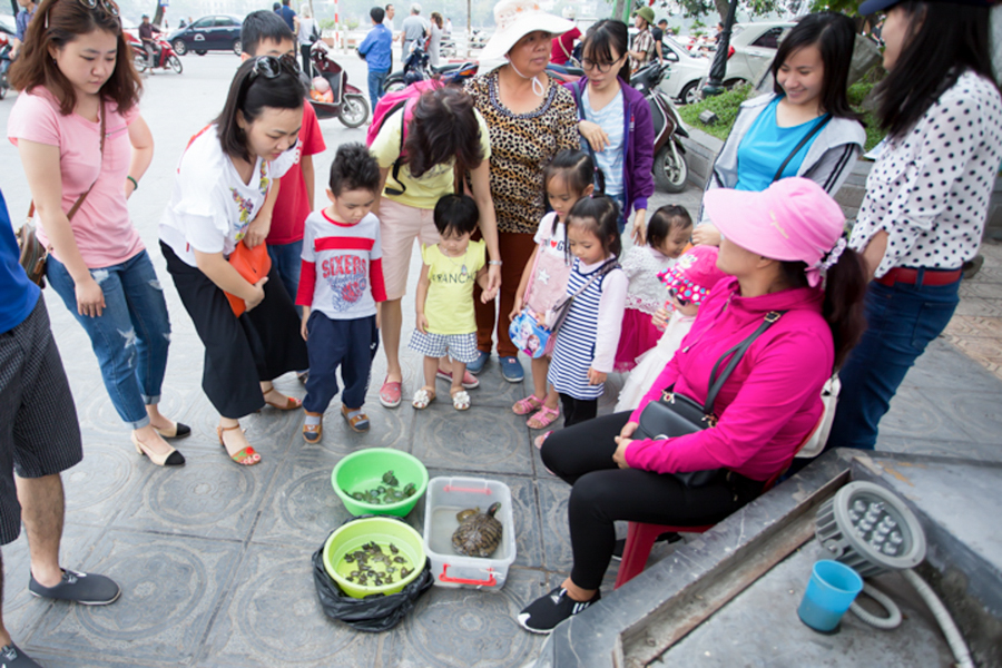บริเวณหน้า "วัดเจิ่นกว๊อก" มีเต่าให้ปล่อยในทะเลสาบด้วย |