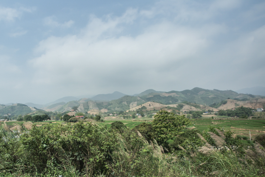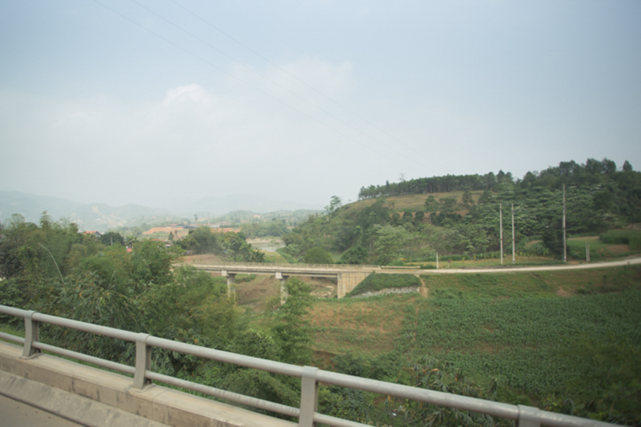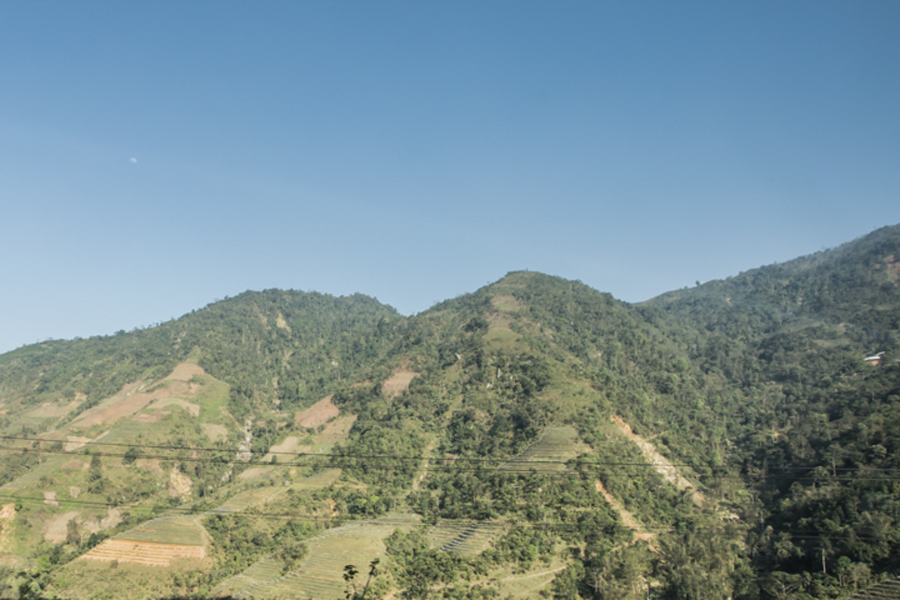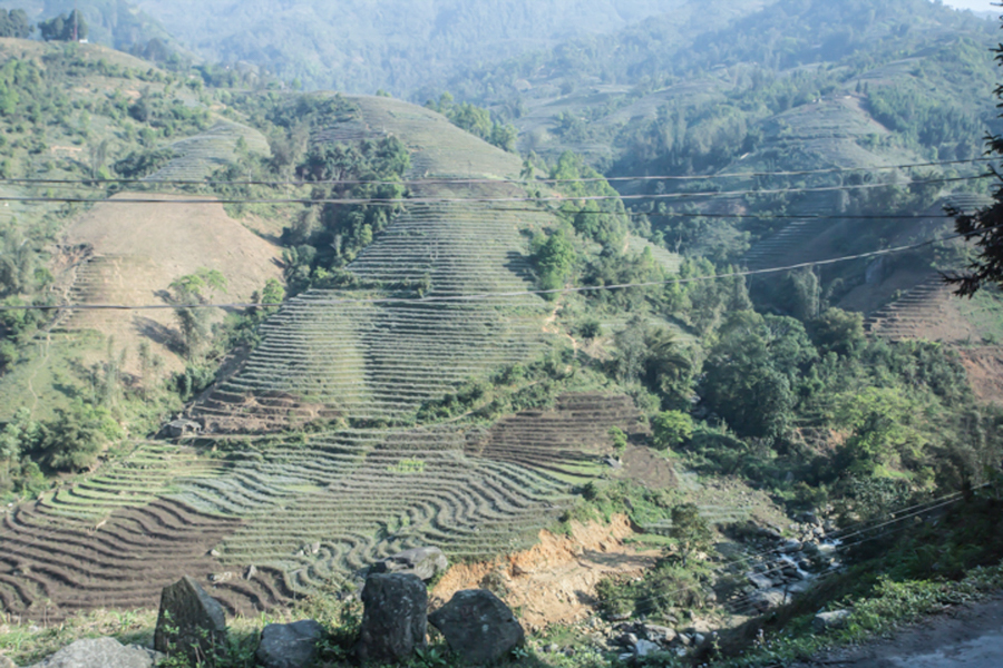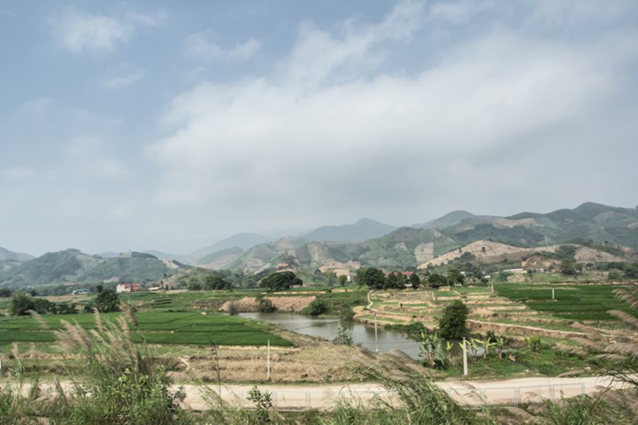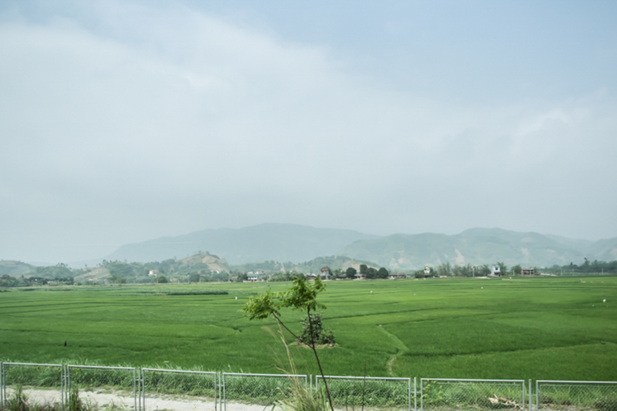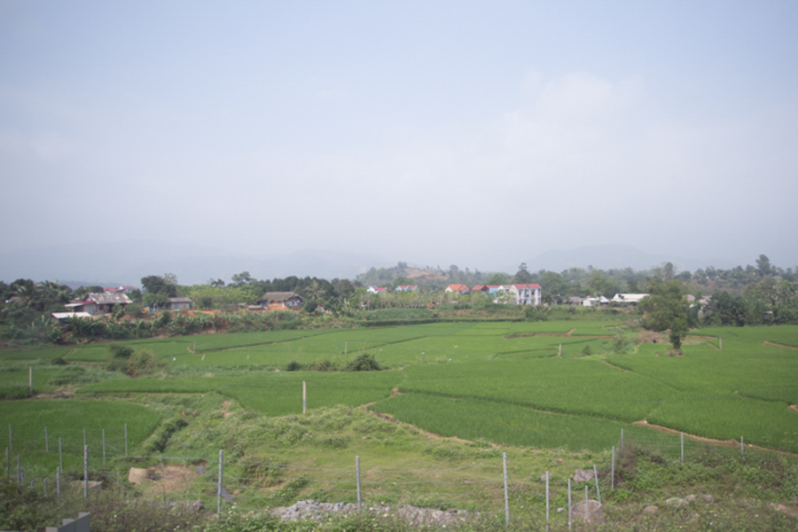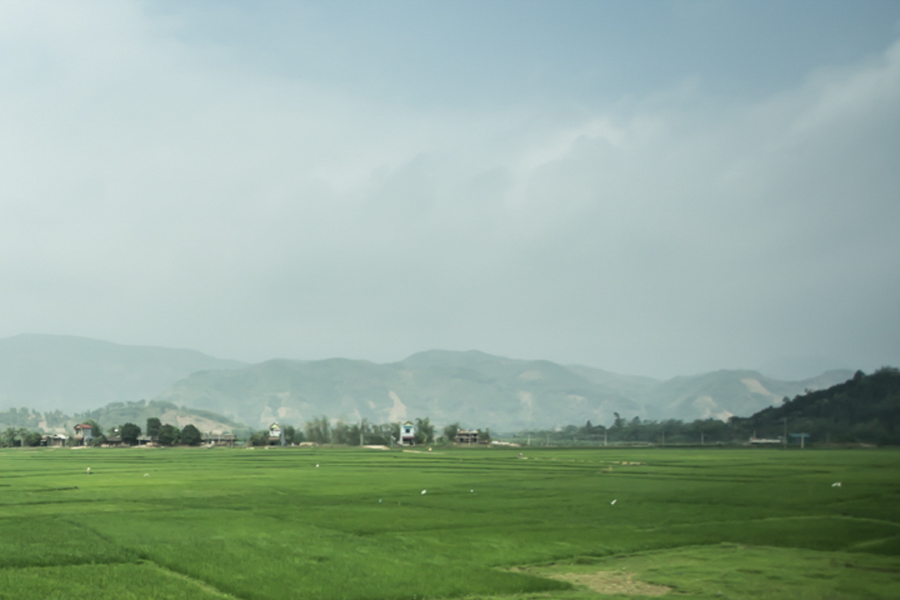 ทิวทัศน์ริมทางไปซาปา ทุ่งนาเขียวขจี |
