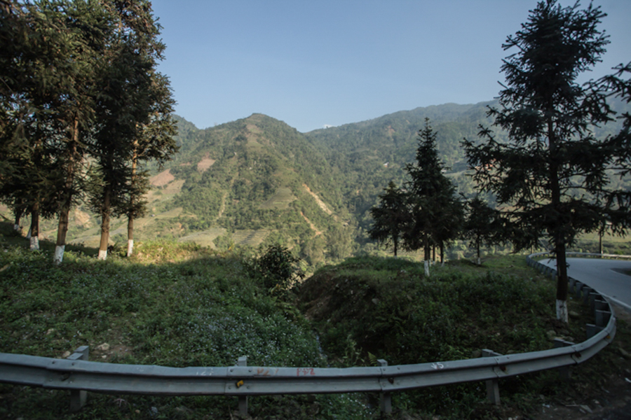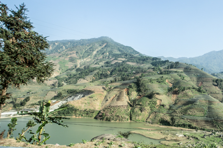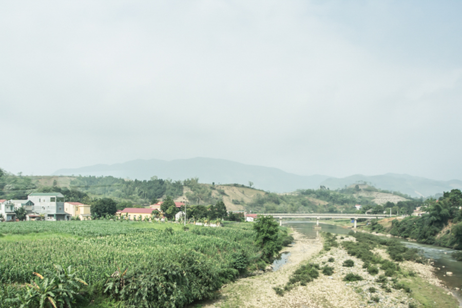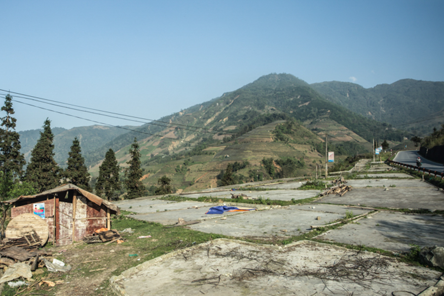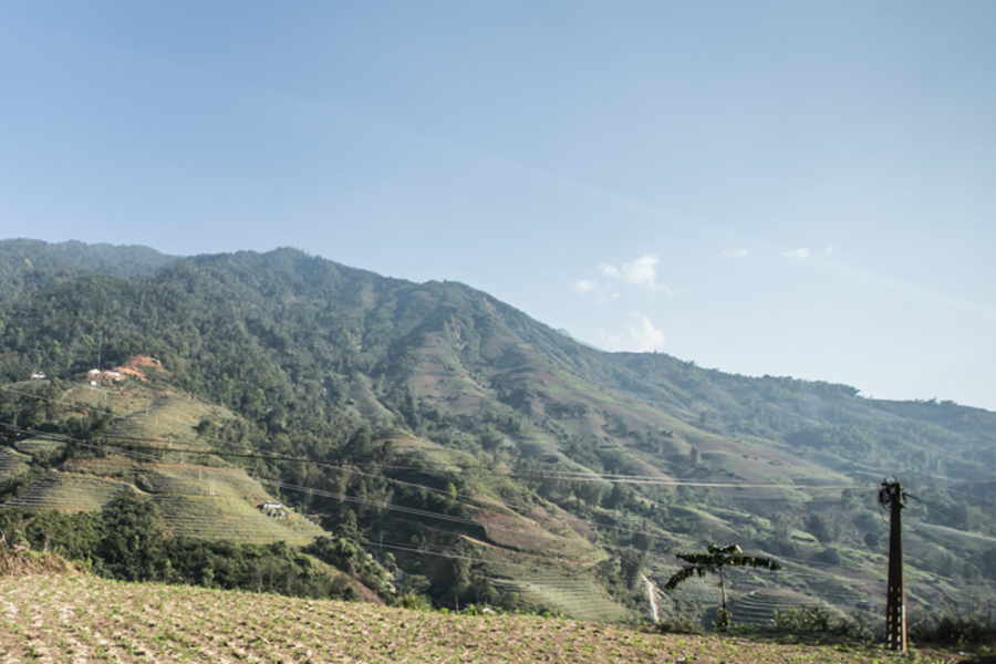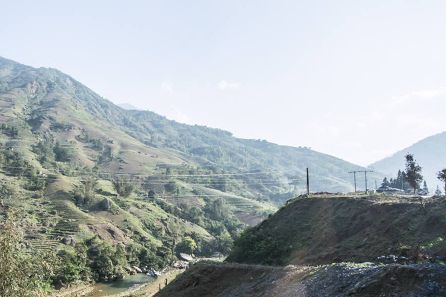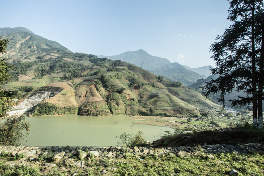 ทิวทัศน์ริมทางไปซาปา ทุ่งนาเขียวขจี |