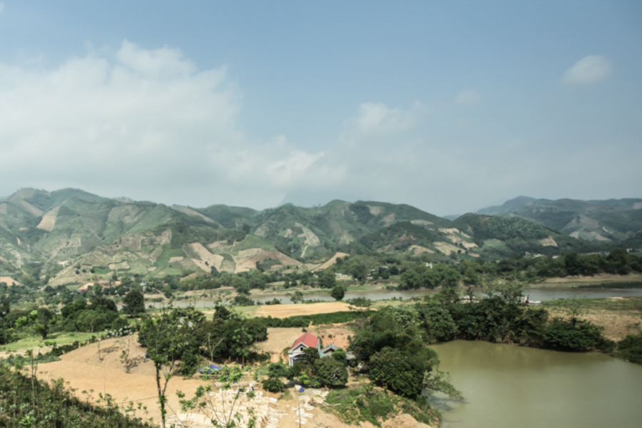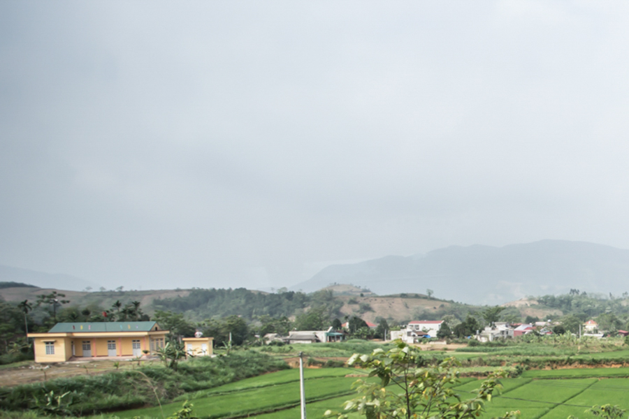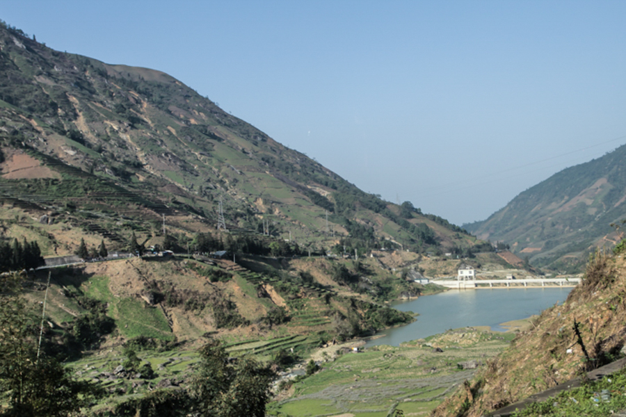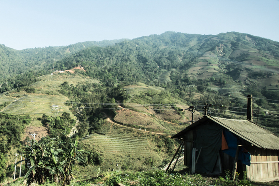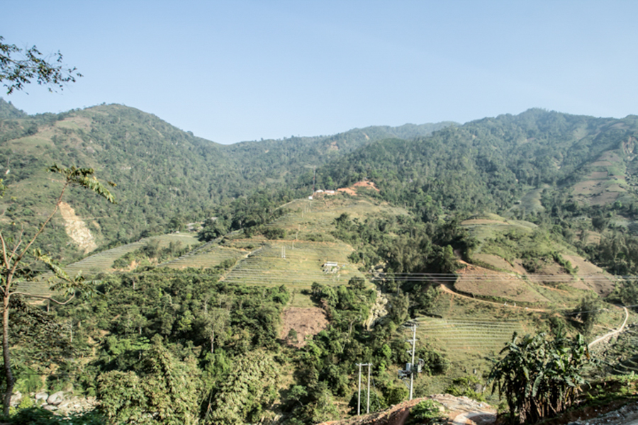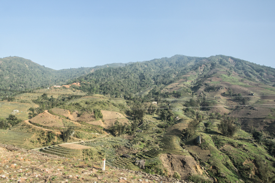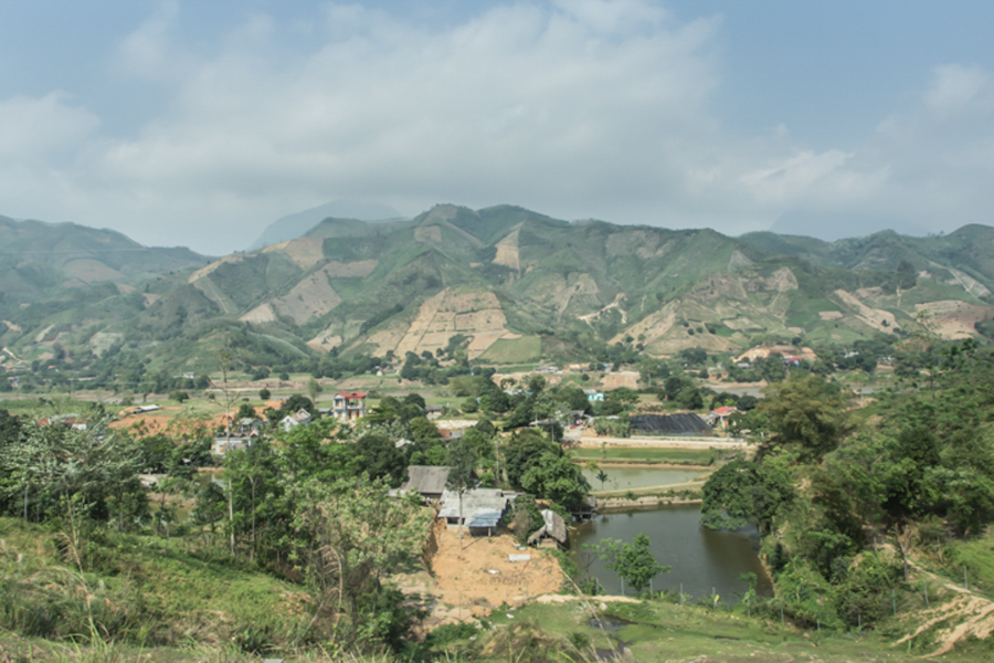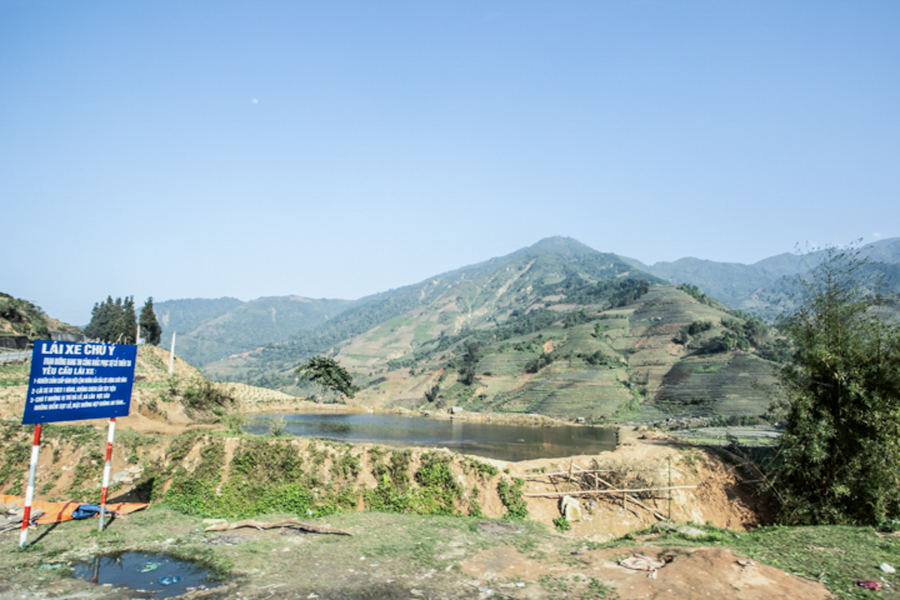 ทิวทัศน์ริมทางไปซาปา ทุ่งนาเขียวขจี |